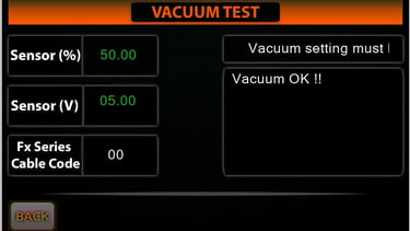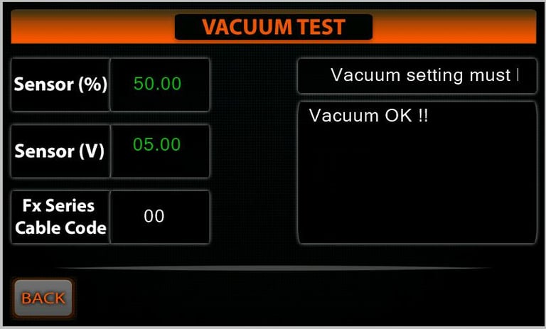 Vacuum Test and Actuator Settings: